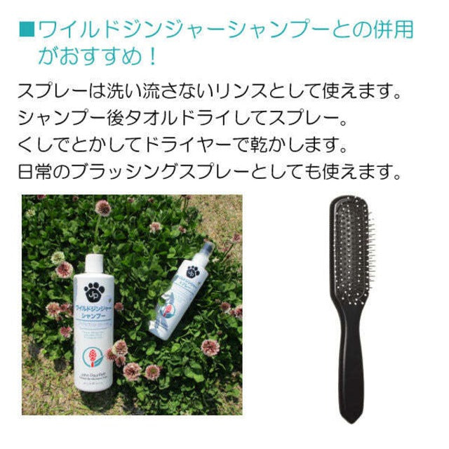 ご使用の際によく振ってください。シャンプー後のリンスの代わりに洗い流さないタイプのスプレーです。シャンプー後タオルドライして、まんべんなくスプレーして、コームで伸ばします。その後乾かして頂く方法です。