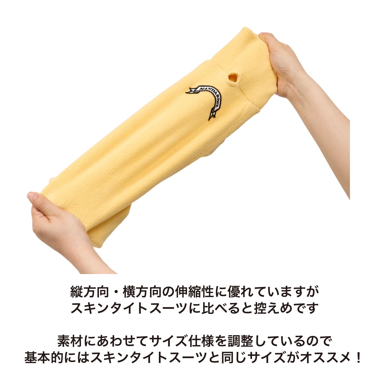 背中のロゴワッペンとパイピングカラーがアクセントのボアスーツ。