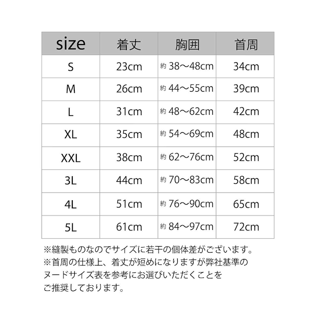 XXL- 着丈36-42cm 胸囲55-66cm 首周34-44cm